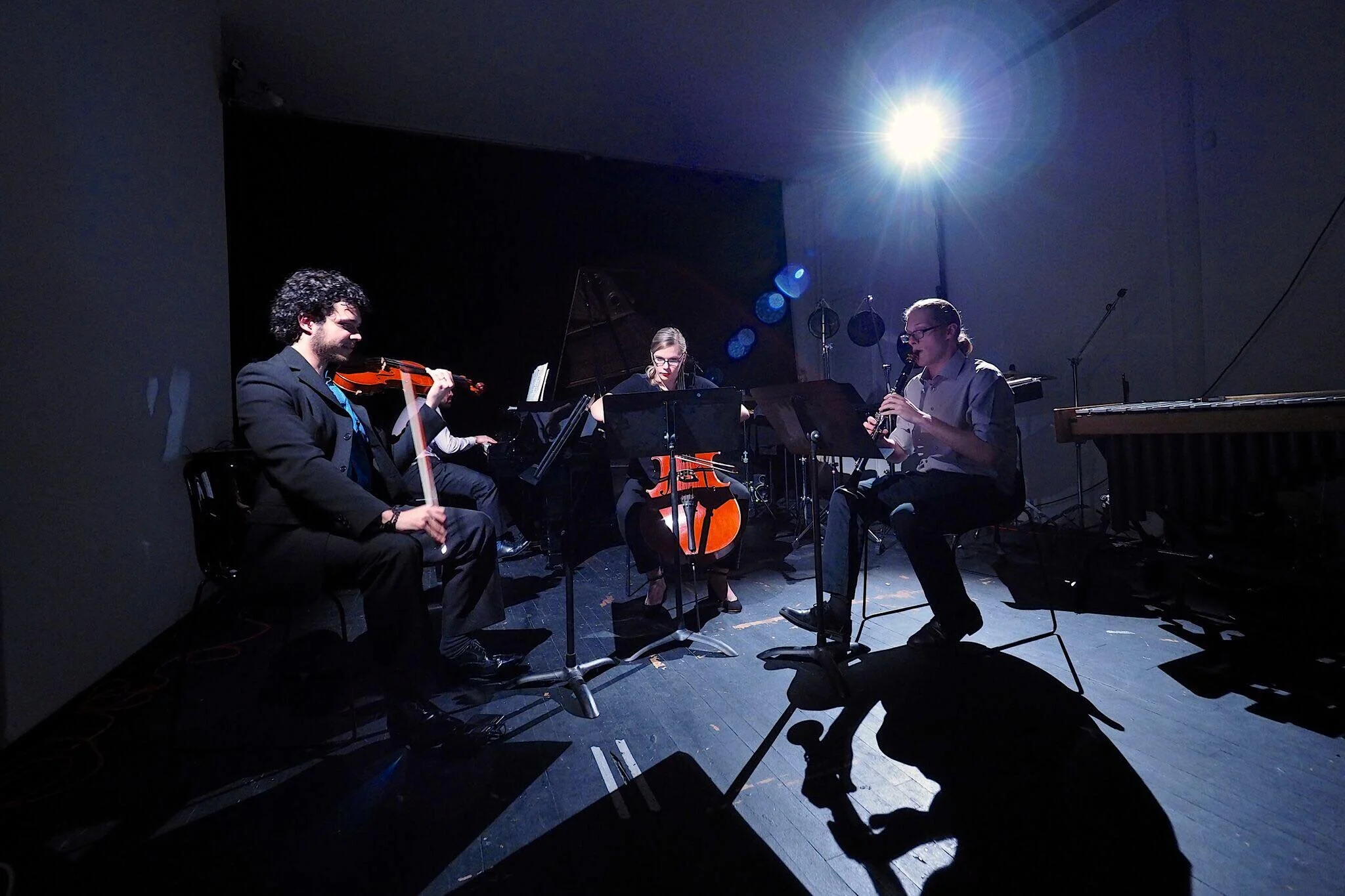 Inspired by the second movement of Mahler’s seventh symphony, this piece explores the dramatic and sonic effect of shifting sounds through the performance space. As the players move between the foreground and background, sounds and motives are presented in differing spatial contexts. The work also explores the liminal space between pitched and unpitched musical materials.